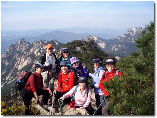 의상능선을 오르내리며 펼처지는 주변의 풍광에 우리님들 환호성을 지른다.