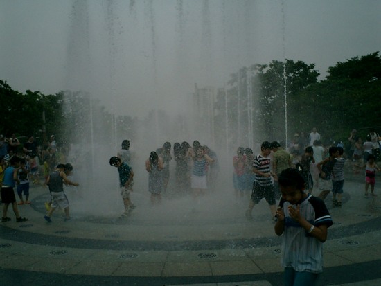 더위를 지울겸 춤추는 분스대에선 아이들이 신나게 놀아요..
