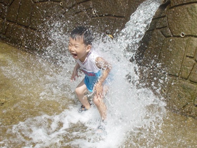 내려오는 물줄기를 피하지 않고 즐기고 있네요