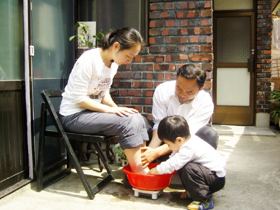 아내의 발을 씻겨 주었습니다.