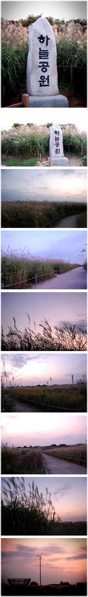 억새축제가 시작되기 바로 전날 저녁에 올라가서 찍은 노을로 물든 하늘공원의 모습.