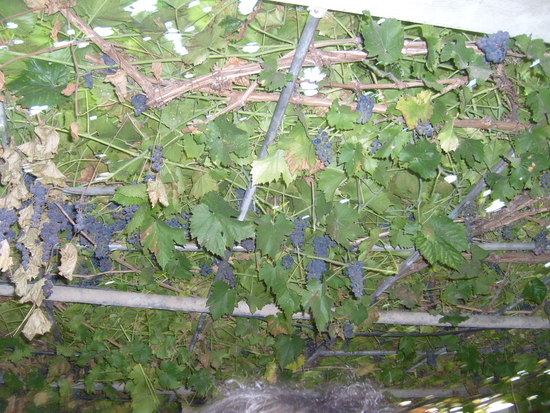 시골 어느집 안마당 안에 주렁주렁 달린 보랏빛포도....