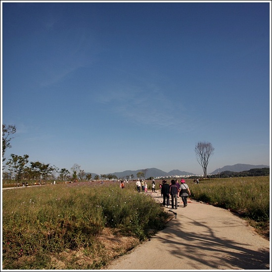 한들한들 갸늘게 피어난 코스모스길을 한참이나 돌아서 구경을 하였습니다.
