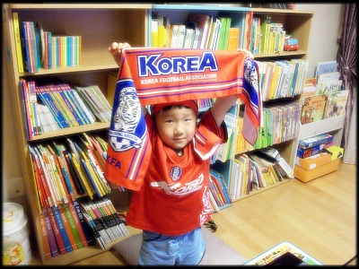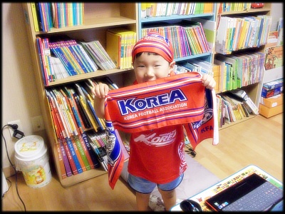 호준군과 "대한민국 짝짝짝 짝짝~" 응원 연습을 하면서 월드컵 분위기를 한 껏 즐기다가...