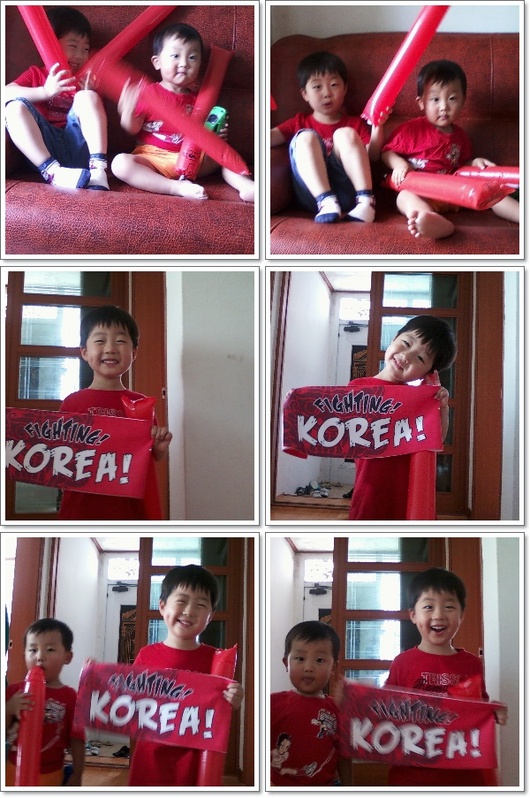 6살인 큰아들은 어린이집에서 응원하는걸 배웠는지 대~~한민국