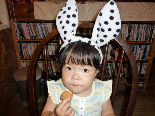 토끼 머리띠가 가장 잘 어울리는것 같아서 씌워봤네요