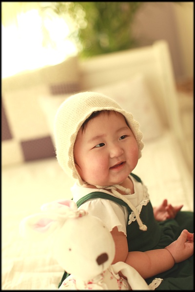 우리공주 토끼인형과 나란히 앉아서 사진 찍었어요..