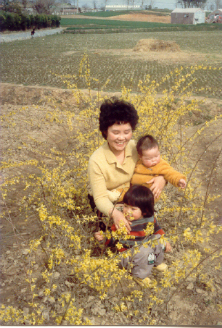 예쁜 개나리가 한 가득 피어 있었고, 동생과 저, 어머니를 아버지께서 카메라에 담아 주셨죠...