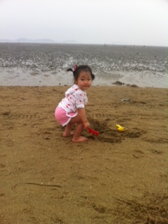 갯벌은 무서워서 못들어가고 모래만 파고있는 그녀..ㅎㅎ