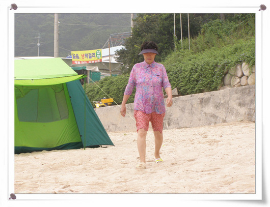 그리고 시어머니는 바다한번 퐁당 하시고 힘드셔서 다시 그늘막텐트로
