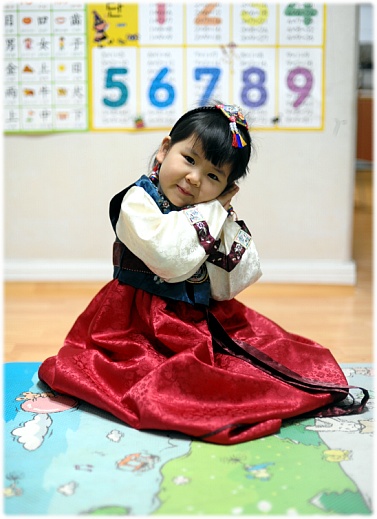 장난치기 좋아하는 우리 딸에게 한복을 입혀놓으면