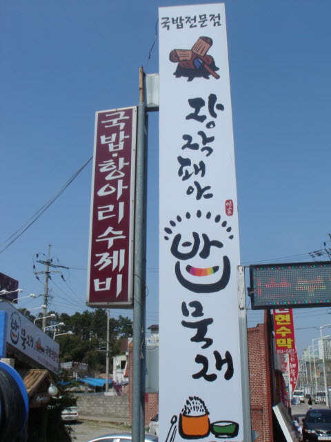 멀리서도 한눈에 보이는 큼지막한 식당이름과 밥과 국이 그려져있는