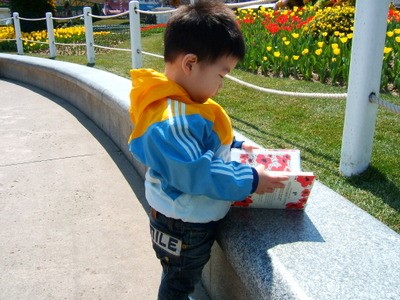 따뜻한 햇살이 비치는 꽃밭앞에서 펼치는 그 책이