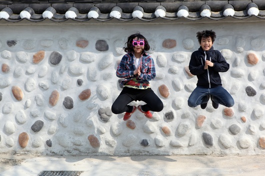 오랫만의 가족여행의 기쁨을 온 몸으로 표현하는 아이들~~