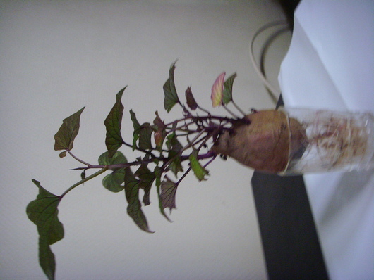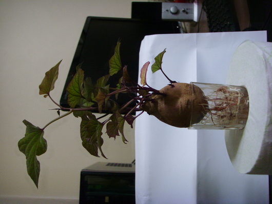 4개월 동안 작은 컵에서 싹 돋았난 고구마 가습기겸 거실을 지키는 고구마