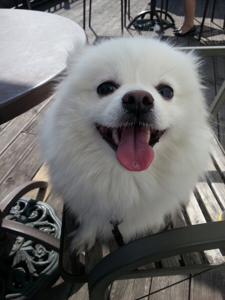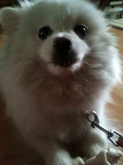 우리집 막내딸 강아지 뽀미입니다.화이트 포메리언이구요.같이 산책 나가서 찍은 사진입니다.~