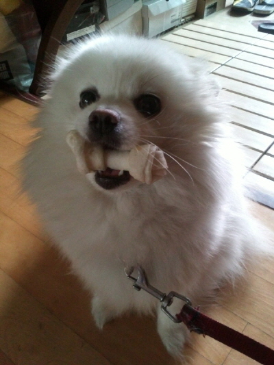 개껌을 좋아해요.자기꺼는 꼭 지키는 똑똑한 강아지입니다.~^^