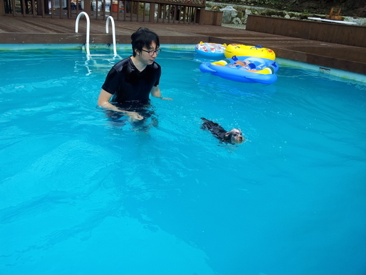 첫수영인데 어쩜 겁도없이 수영을 잘하는지!