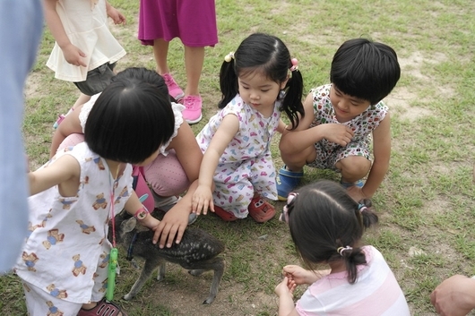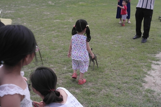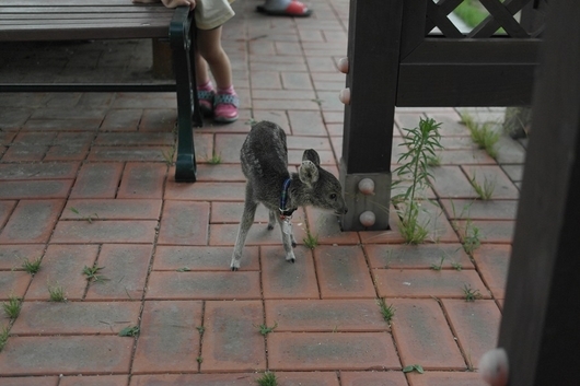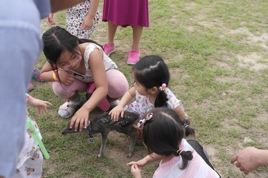 주말을 맞아 조카들이랑 공원에 놀러갔는데 누군가 아기사슴을 데리고 산책왔더라구요~