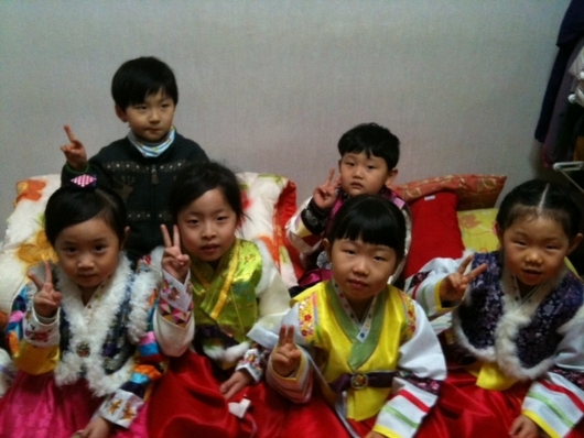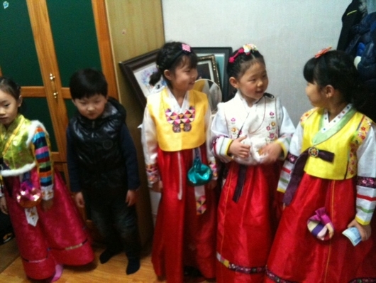이번 설에도 모두 모여서 예쁘게 세배도 하고 윷놀이도 하면서 즐겁게 보냈어요