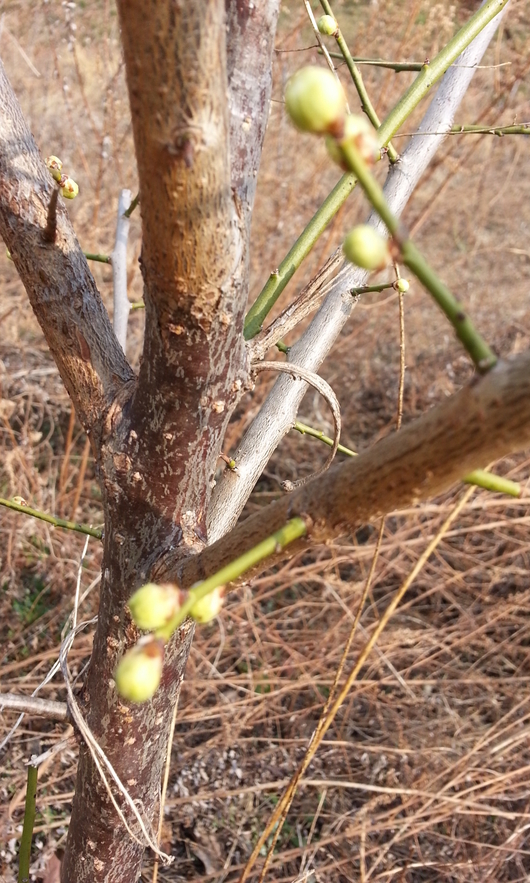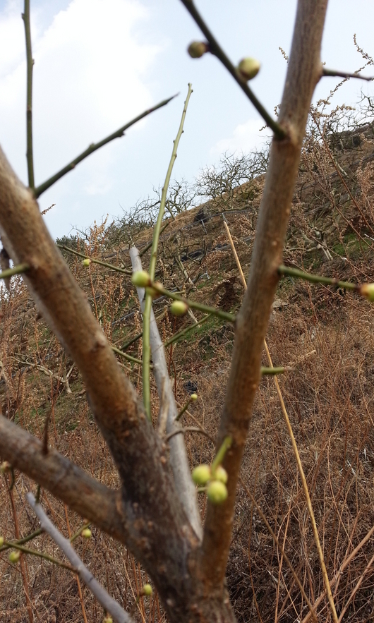 쑥캐러 갔다가 마주친 이름모를 과실나무에 새싹이 나오고있었어요.