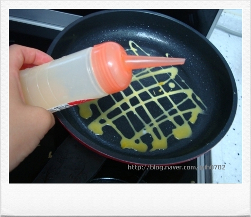 간단한 볶음밥에 달걀지단을 요렇게 그물모양으로 구워서 잘라서 데코해주시면