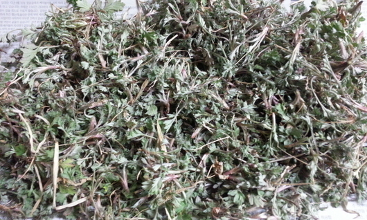 들판으로 나가서 쑥을 캐왔어요.