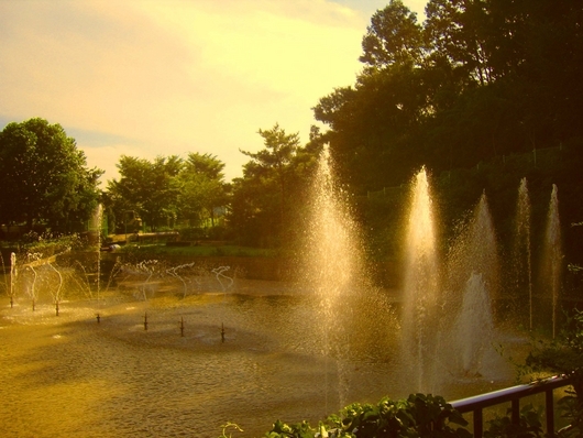 넘 뜨거워요 공원에서는 시간을 정해 놓고 분수대 샤워를