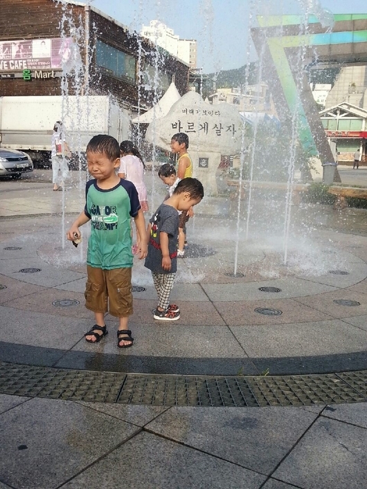 어린이집 끝나고 들어가는 길 분수대를 보면서