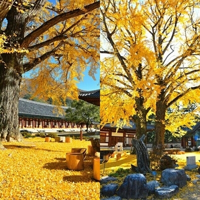운문사의 가을 은행잎