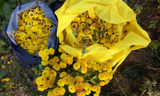 운동삼아 나가는 공원에서 마침 국화를 예초기로 베어놓는중!